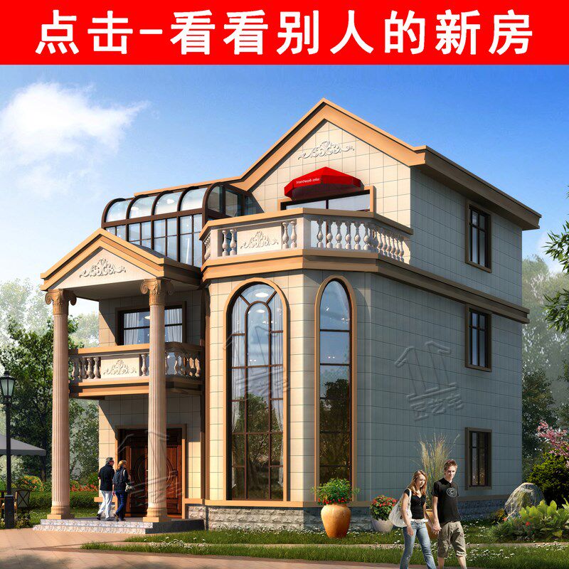 各种尺寸二层半三层别墅设计图纸农村自建房房屋施工图7-9m10-15m热门设计联盟服务商