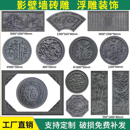 影壁仿古圆形福字砖雕古建筑中式影壁背景墙装饰挂件街景古镇照壁热门设计联盟服务商