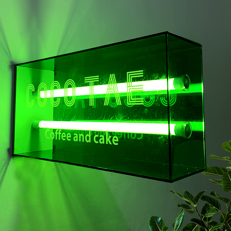 咖啡馆绿色透明亚克力灯箱创意店铺发光字广告牌创意门头招牌定制热门设计联盟服务商