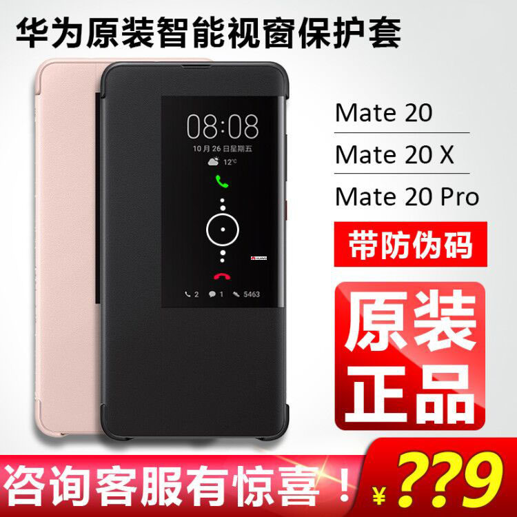 华为原装mate20pro手机壳正品皮套mate20X智能视窗保护套超薄翻盖轻薄男女高档全包防摔翻盖外壳创意潮牌个性热门设计联盟服务商