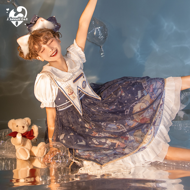 【尾款】新款宇航弧原创设计lolita洛丽塔罩纱蓝色连衣裙线球猫热门设计联盟服务商