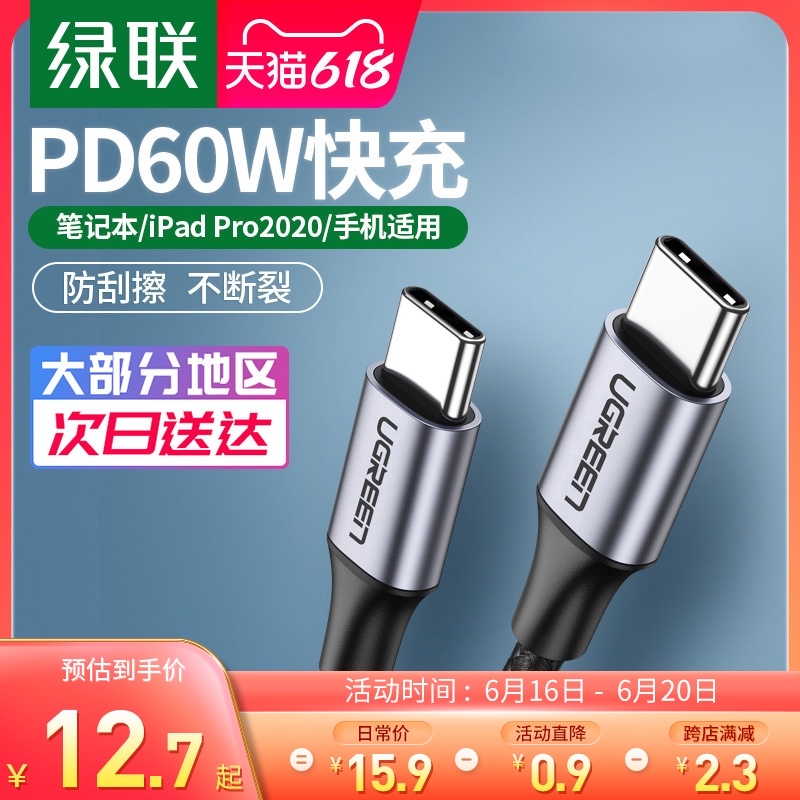 绿联 typec公对公数据线pd快充ctoc双头usbc充电器线安卓适用于苹果macbook笔记本ipadair4pro电脑switch手机热门设计联盟服务商