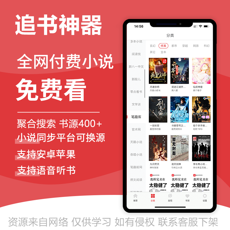 免费看书vip全网络小说神器 追书阅读软件版 支持苹果安卓app热门设计联盟服务商