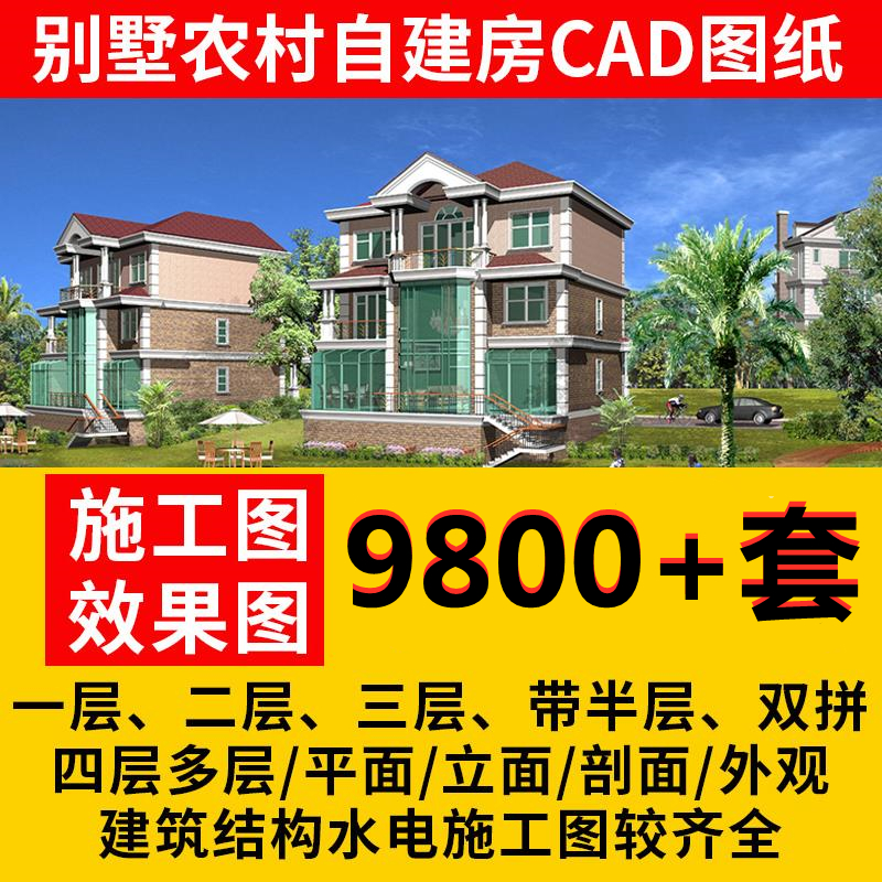 农村自建房设计图二层半三层双拼乡村小户型别墅CAD施工图纸热门设计联盟服务商
