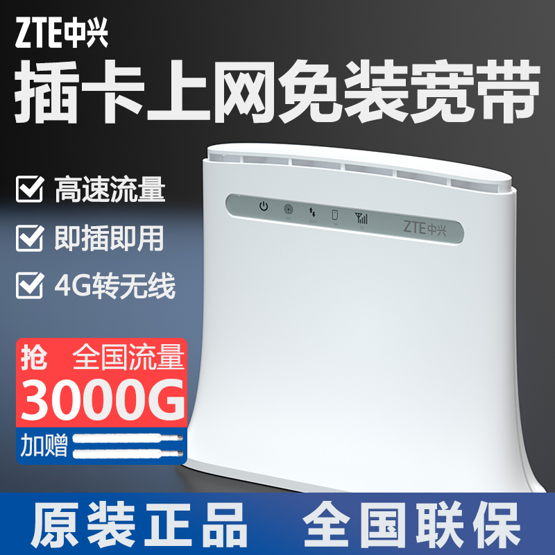 中兴4g无线路由器联通电信全网通插卡随身WiFi转有线CPE家用宽带MF283U移动网络SIM上网手机设备车载企业办公热门设计联盟服务商