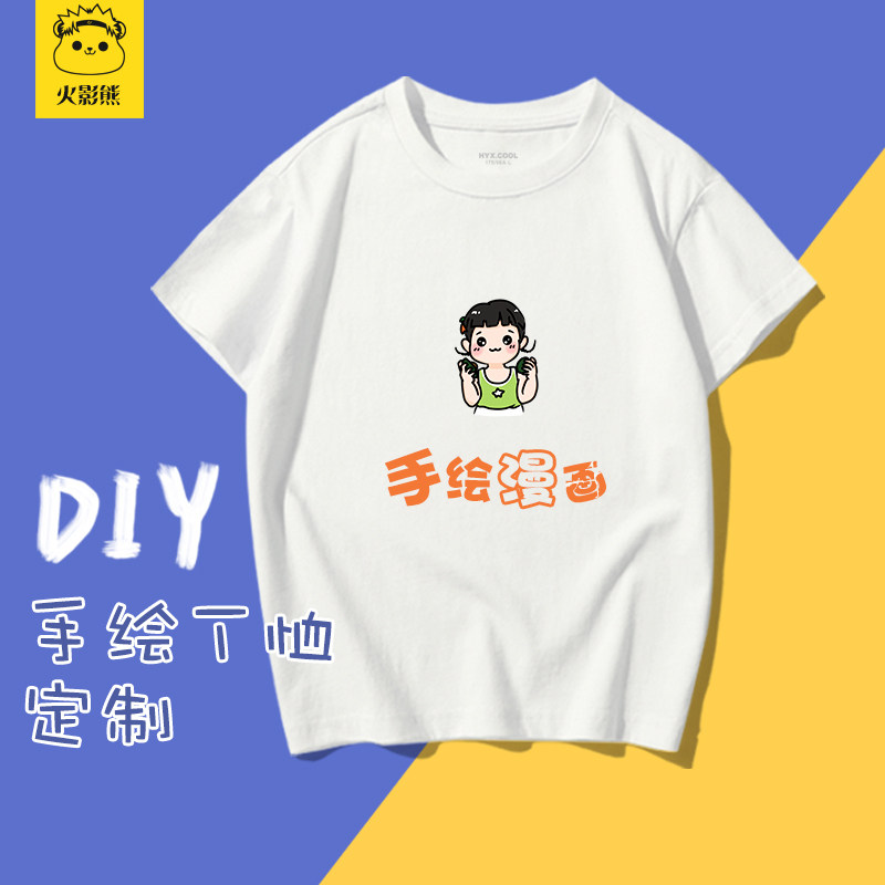 儿童新款手绘漫画短袖T恤亲子装纯棉圆领ins超火来图设计DIY定制热门设计联盟服务商