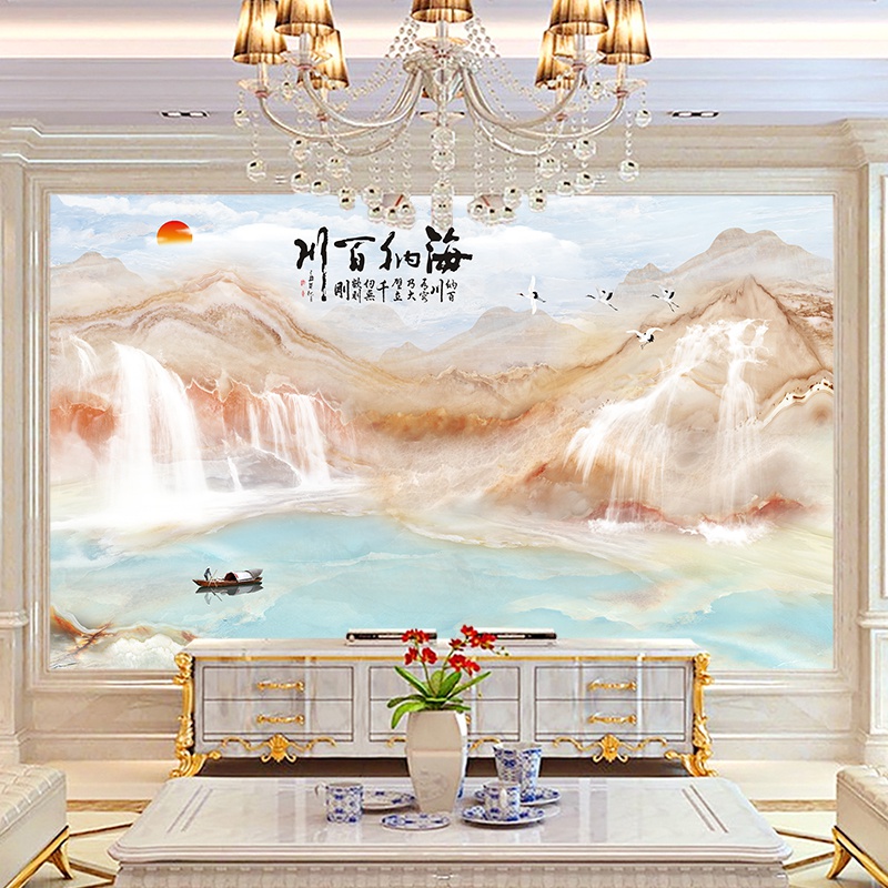电视背景墙壁纸3D立体墙纸大气海納百川客厅5D壁画8d影视墙布装饰热门设计联盟服务商