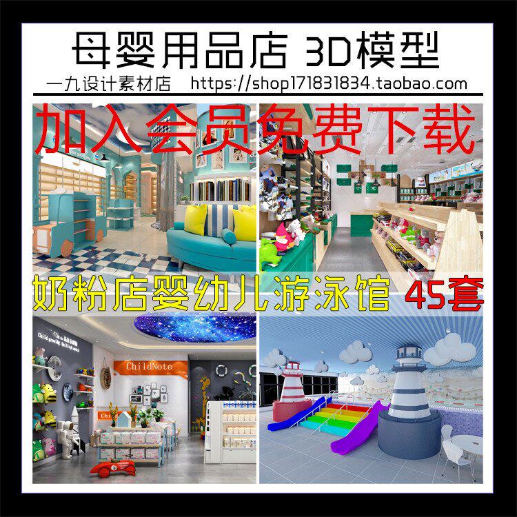 母婴用品店3d模型婴幼儿童游泳馆生活馆奶粉店卖场展厅3dmax模型热门设计联盟服务商