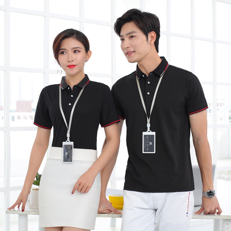 夏季翻领短袖t恤工衣定制翻领polo衫员工厂服餐饮工作服t印绣LOGO热门设计联盟服务商