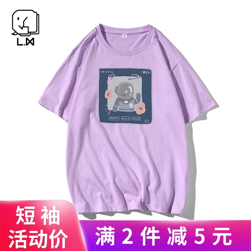 紫色t恤女夏季薄款显瘦女装宽松圆领上衣设计感小众印花短袖ins潮热门设计联盟服务商