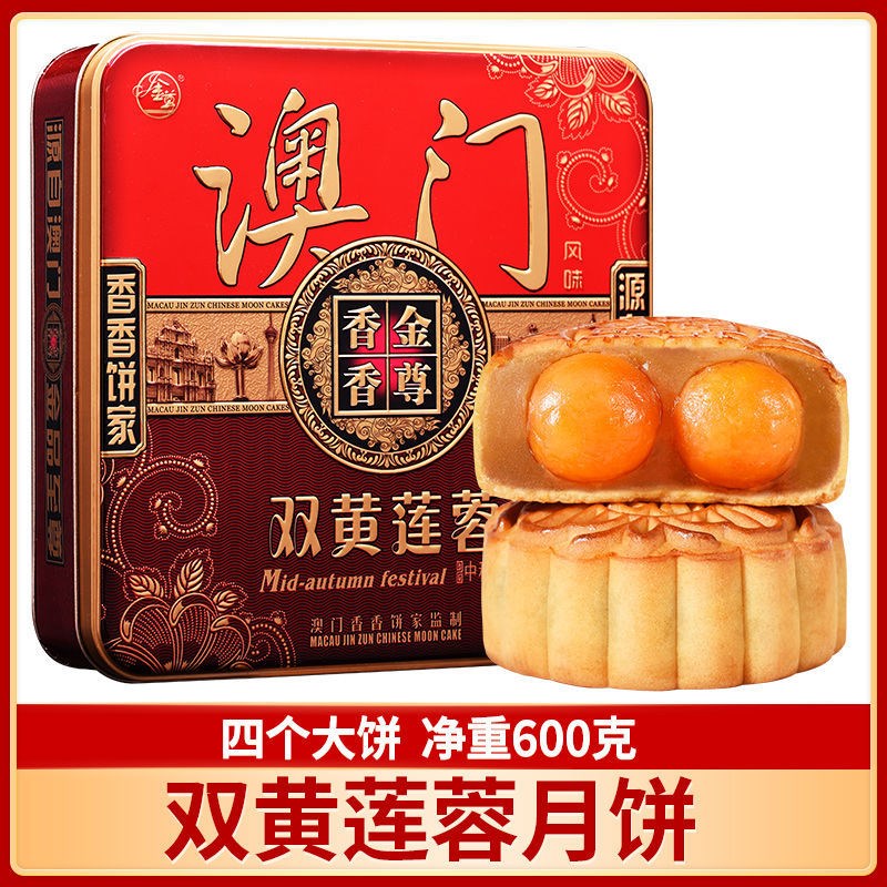 澳门金尊双蛋黄月饼广式月饼豆沙水果味月饼多口味多款式可选团购热门设计联盟服务商