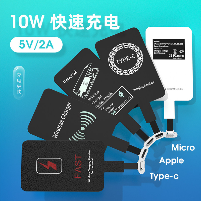 手机无线充电贴片接收器适用苹果6s8p接收器华为nova6se8小米vivo安卓接口typec10W自动感应发射器无线充电器热门设计联盟服务商