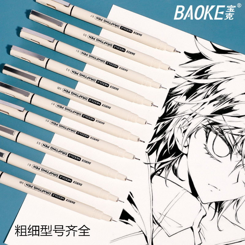 宝克针管勾线笔套装美术专用动漫设计绘图手绘0.05mm黑色极细0.1描图0.3描边0.5描线学生用0.7漫画草图笔防水热门设计联盟服务商