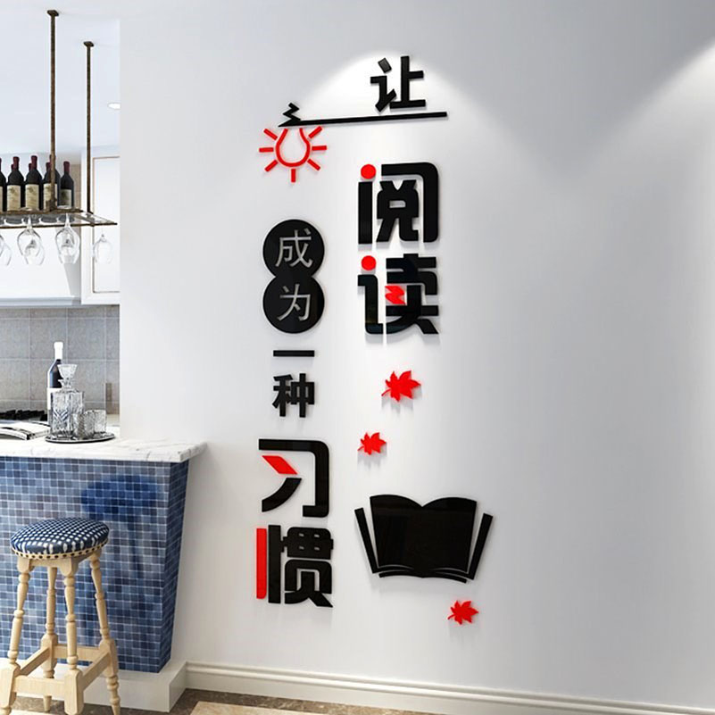 让阅读成为习惯书房图书馆教室班级墙面文化装饰3D亚克力立体墙贴热门设计联盟服务商