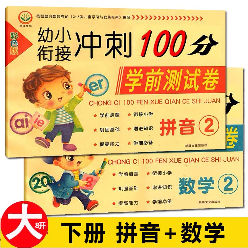 下册学前测试卷数学2拼音2幼小衔接冲刺100分彩色版幼升小 幼儿园大班学前班练习题综合20以内复韵母答案明泽 小学入学准备全套热门设计联盟服务商