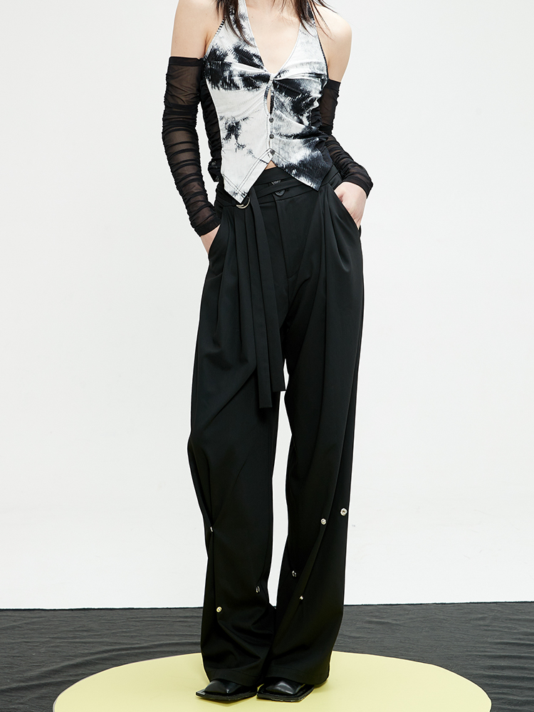 TakeCare金属扣收口设计宽松显瘦西装裤热门设计联盟服务商