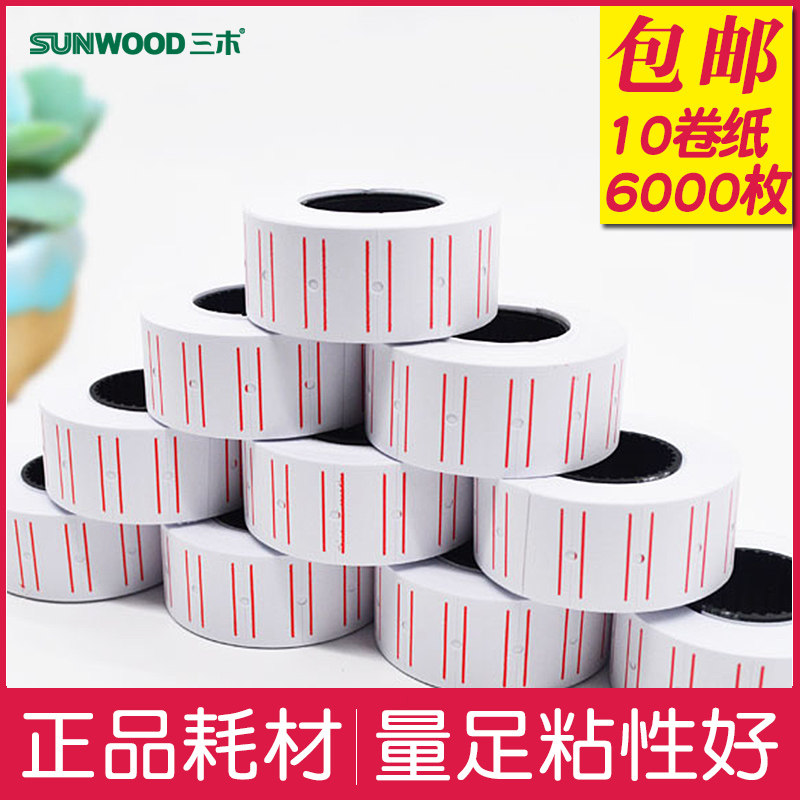 三木单排标价纸货架标价条标价机超市标价贴打价机价签10卷黄色彩色纯色白色商品价格标签价签热门设计联盟服务商