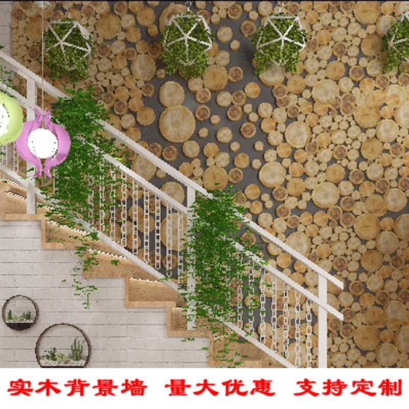 真木头圆木片壁饰酒吧咖啡厅店馆装修实木电视背景墙面装饰原木贴热门设计联盟服务商