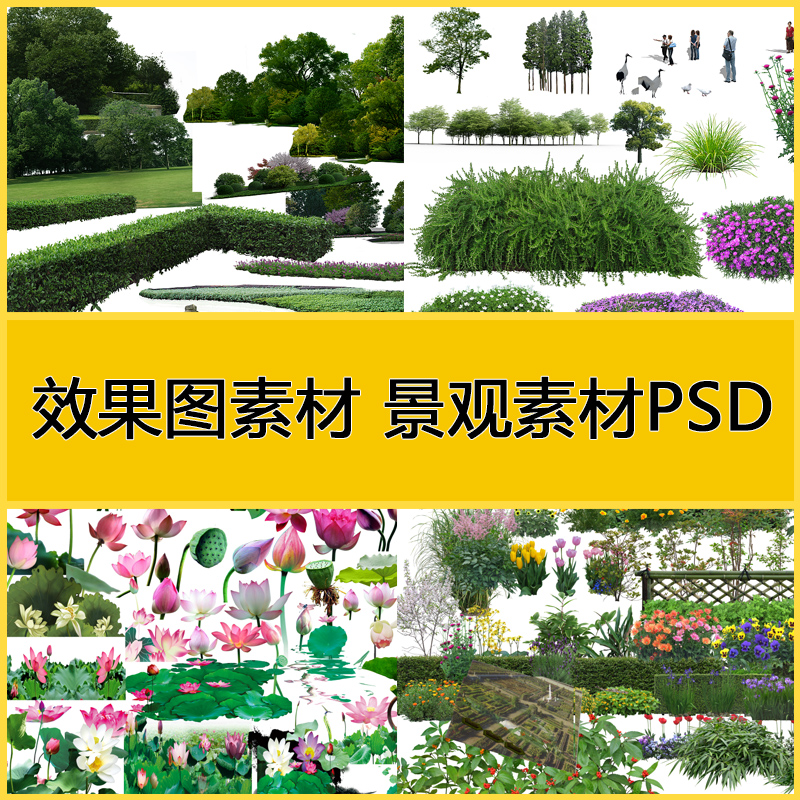 建筑景观园林绿化效果图PS设计免抠图植物灌木乔木素材psd合集