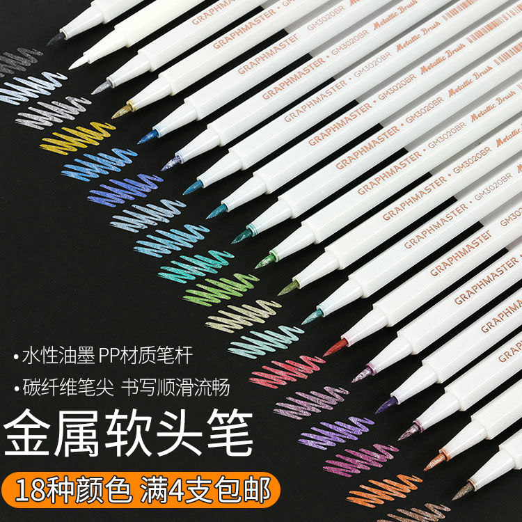 斯塔3020BR防水金属彩色油漆笔涂鸦相册装饰金色设计签名软头笔手账专用标记DIY珠光水性记号笔学生手绘套装热门设计联盟服务商