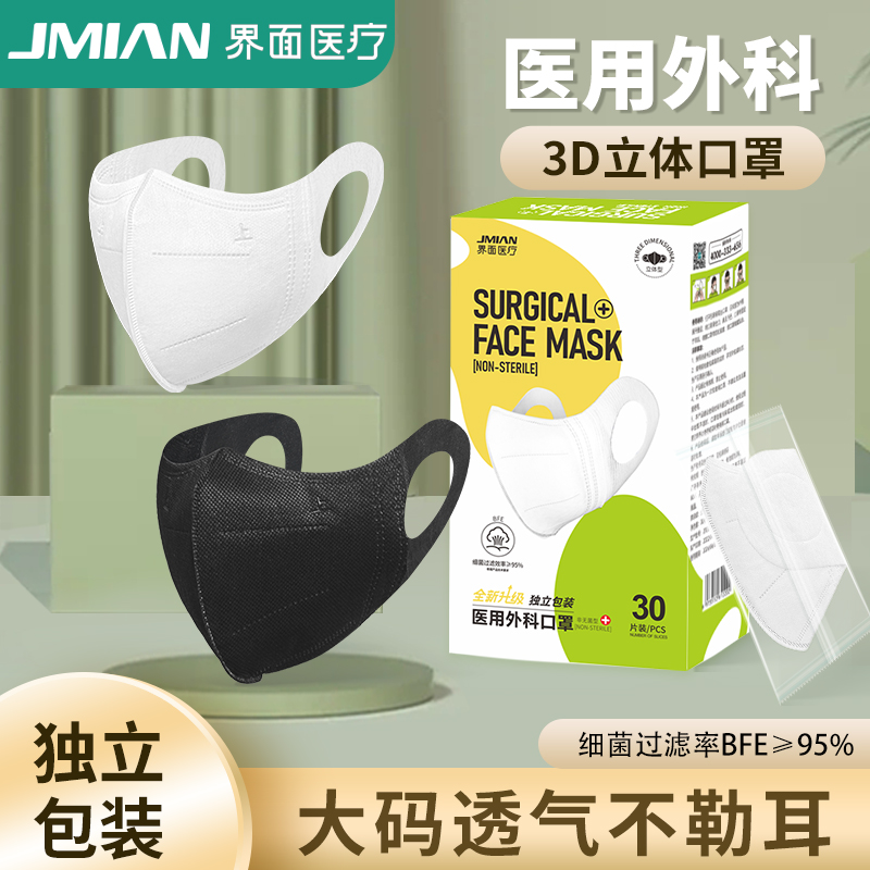 界面医用外科3d立体口罩大码一次性医疗口罩大号大脸专用夏季透气热门设计联盟服务商