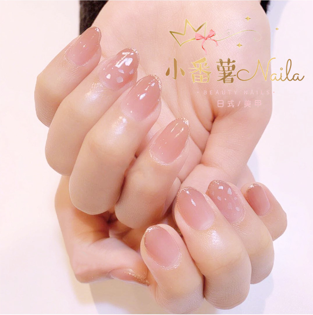 小红书款水润清透杏粉金边贝壳 纯手工打造光疗成品贴片热门设计联盟服务商