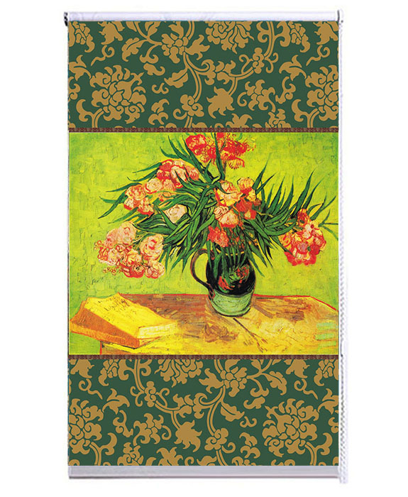 定制窗帘画可水洗田园欧式卷式卷帘装饰画名画梵高夹竹桃和书籍热门设计联盟服务商