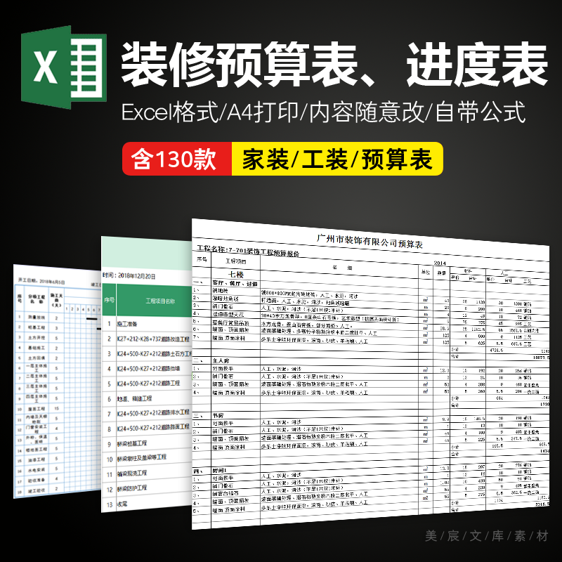2021装修预算报价表装饰公司工装家装价格表施工进度表计划安排表热门设计联盟服务商