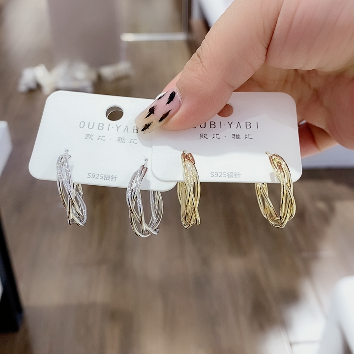 欧比雅比2021年款S925银针扭花圈圈耳环女法式极简冷淡风耳圈女热门设计联盟服务商