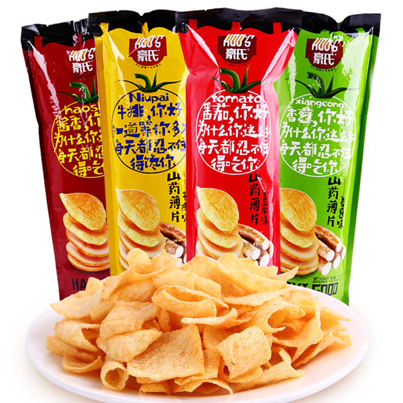 豪氏山药薄片33gX8包膨化好吃山药脆片薯片零食休闲大礼包小吃